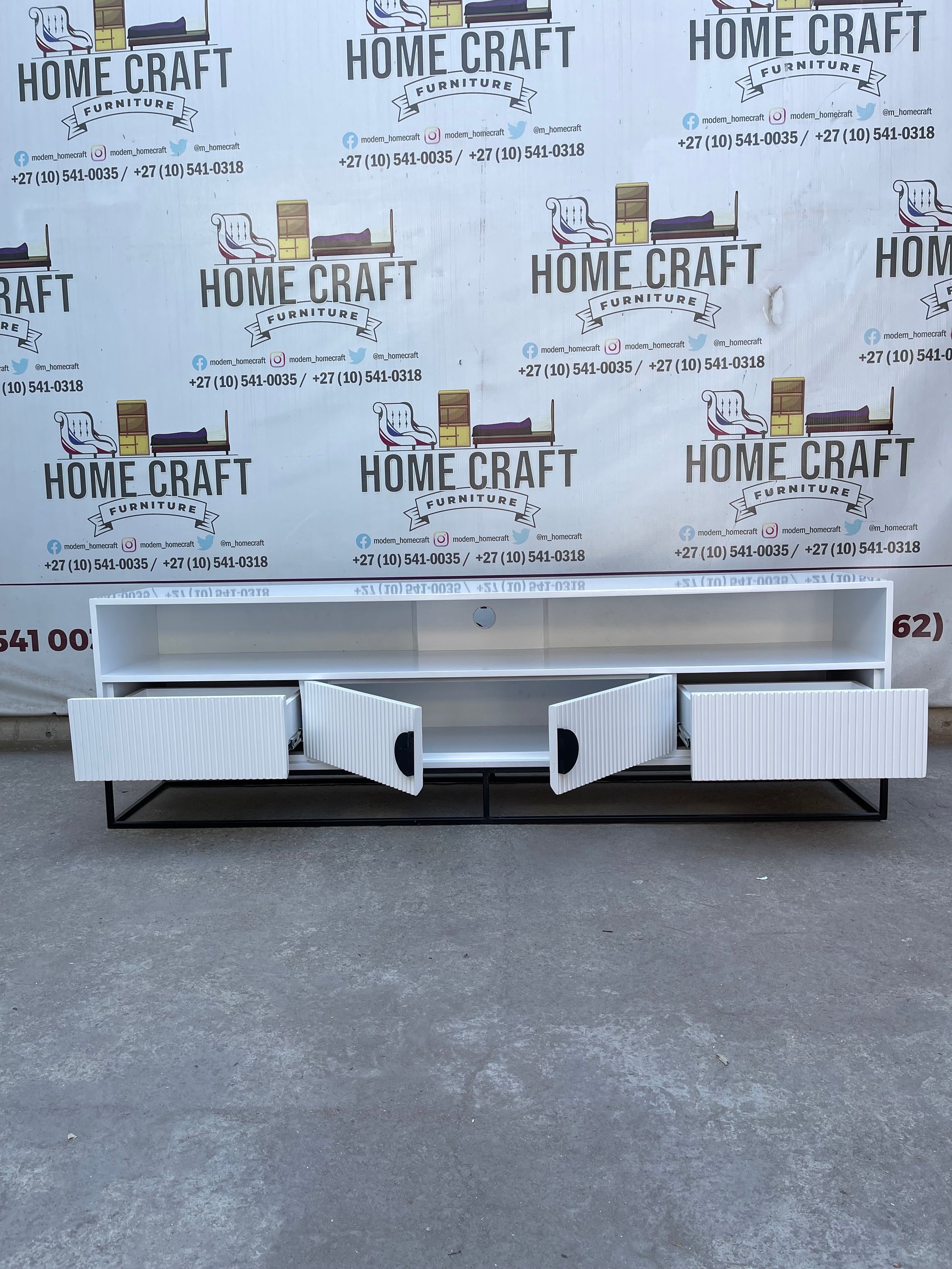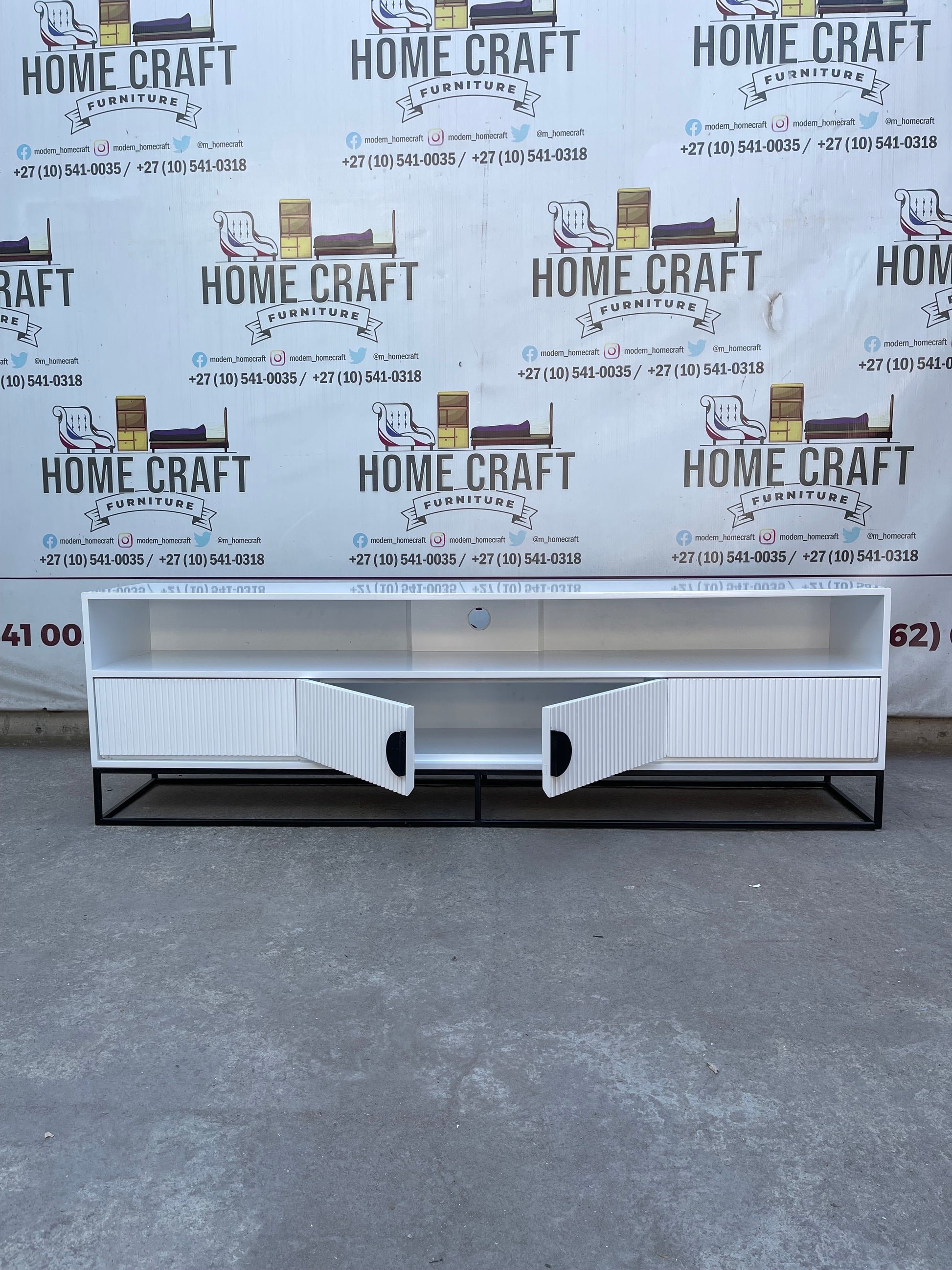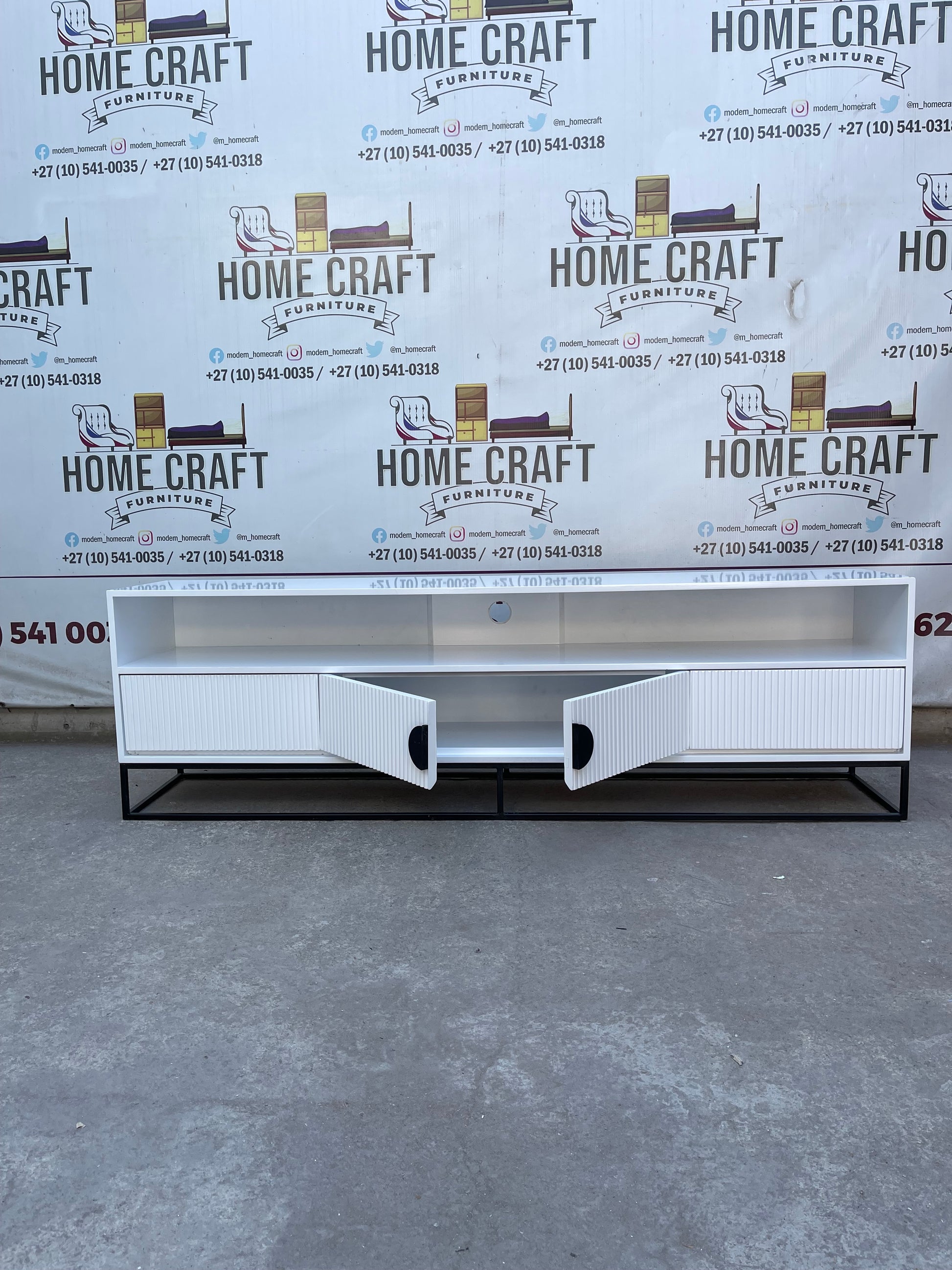 Linda - 2 Drawer & 2 Doors Tv Stand - With Centre Shelves - White & Black